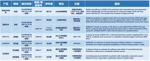 2022 ASCO年会另有5款永利娱乐城医药上市前抗肿瘤创新药的相关研究被接收为壁报,包括SHR-1316、普那布林、法米替尼、SHR-1701和SHR2554,他们的单药或联合方案相关7项研究被接收为壁报,覆盖肺癌、鼻咽癌、淋巴瘤、甲状腺癌和结直肠癌等领域。