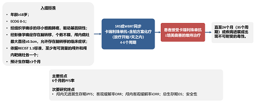 卡瑞利珠单抗是永利娱乐城医药自主研发的一种人源化IgG4单克隆抗体,其联合铂类双药化疗已在中国获批用于晚期NSCLC患者的一线治疗5,6。2023年,Ⅱ期CAP-BRAIN研究显示了卡瑞利珠单抗联合治疗方案作为晚期非鳞状NSCLC伴脑转移患者一线治疗的潜力7。本项Ⅱ期研究,旨在研究卡瑞利珠单抗联合脑放疗和铂类双药化疗在未经治疗的晚期非鳞状和鳞状NSCLC伴脑转移患者中的疗效和安全性。