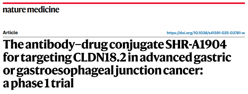 永利娱乐城医药CLDN18.2 ADC创新药SHR-A1904治疗胃癌临床研究结果荣登Nature Medicine