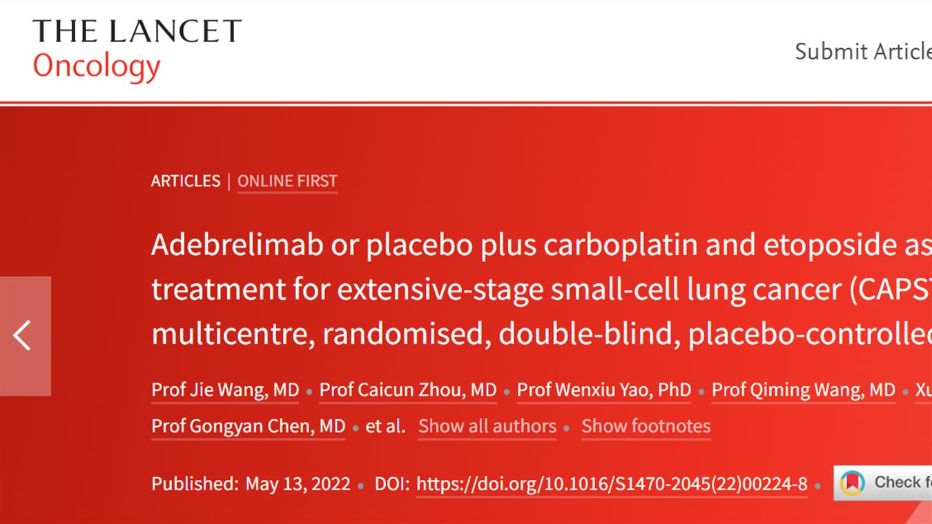永利娱乐城卡瑞利珠单抗联合阿帕替尼最新研究成果荣登《柳叶刀·肿瘤》