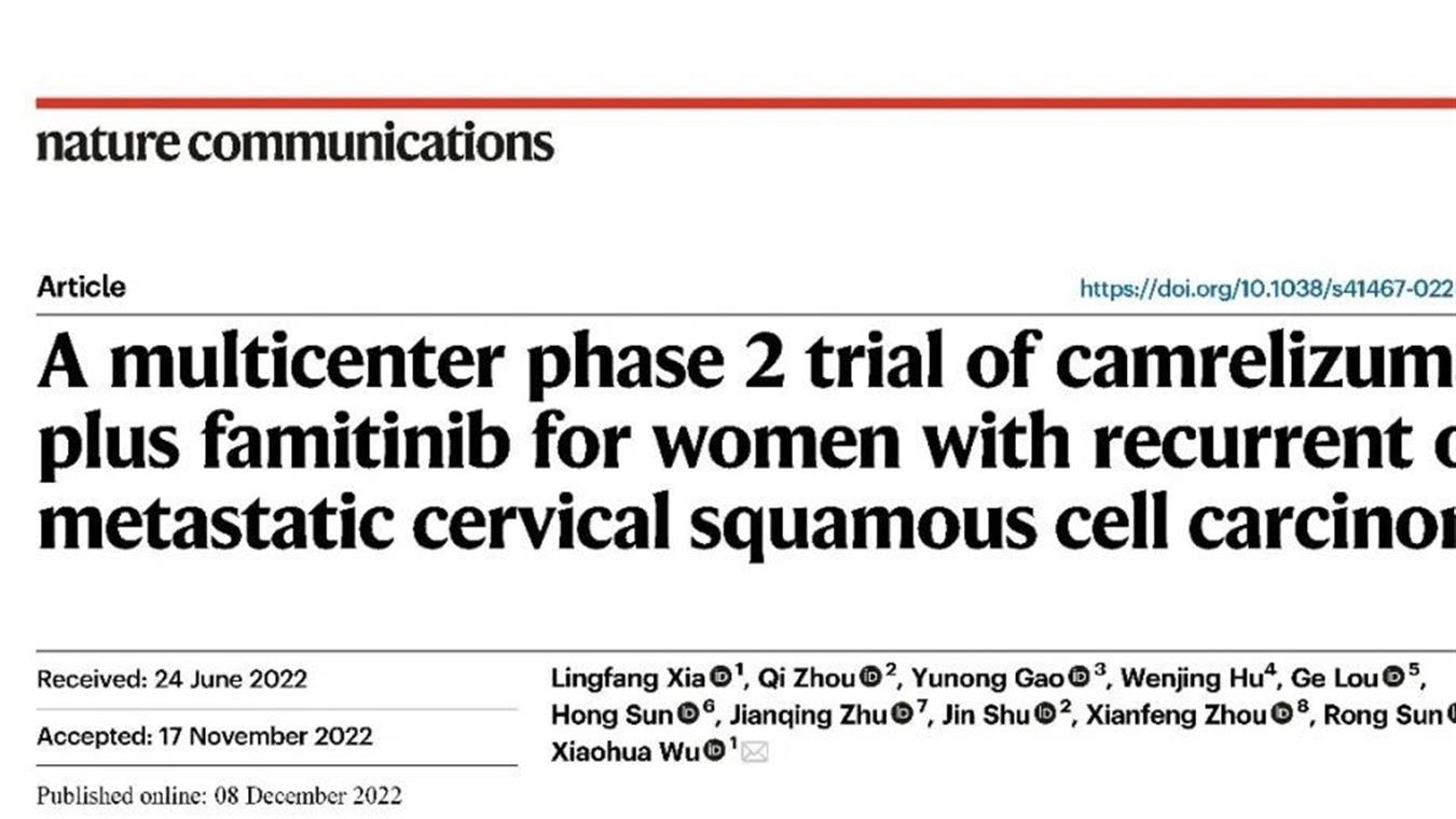 永利娱乐城创新药卡瑞利珠单抗联合法米替尼用于复发或转移性宫颈癌研究结果荣登JCO